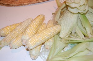 Alright, I don’t know if corn on the cob actually goes with pasta, but I can’t resist when the grocery store puts corn on sale. I just had to buy it. Because, really, I love corn on the cob. And so does Julia, she had 3 ears! And one of the Abdos had none.