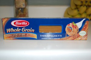 Whole grain pasta. A cabinet keeper must. Once cooked, add olive oil and some garlic powder. Yummy!