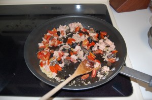 I used cherry tomatoes, cut into quarters, rather than sun-dried tomatoes.
