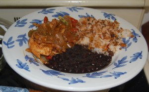 Last Monday, Jonathan’s boss came over dinner. Ryan is a 30-something who is pretty fun to be around and we (mostly Jonathan) have gotten to know him well over the last 2 years. Even though he insists on not being called “boss” his name is still on the building, so I decided that we’d go all out, Mexican style. I made Chicken Fajitas with rice, black beans and homemade tortillas.