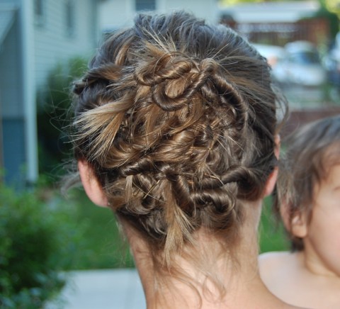 4. Twirl hair, pull back to the bottom of your crown, pin down with bobby pins.
