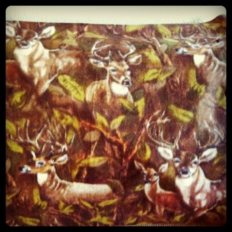 This week I found a yard of fleece for $2 at Hobby Lobby. And while fleece isn’t the number one choice for cloth wipes {flannel or terry cloth are}, I figured I don’t have much to lose. And the fact that it’s an awesome deer print pretty much sold me {I’m a sucker for random, off the wall fabric}.