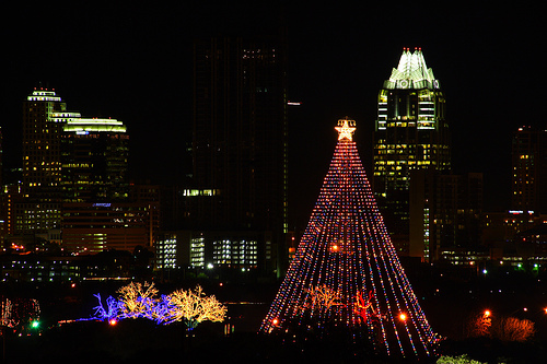 4. Zilker Park – A huge park just south of downtown, Zilker Park {home of Austin City Limits Festival} does a wonderful Christmas tree “poll”. It’s a poll that is shaped like a tree, with the shape outlined in lights. It’s a sight to behold.