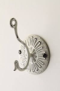 2. Get a Purse Hook – My purse ends up either on the floor or kitchen counter. Neither place is very good, because it’s either in danger of little hands or taking up space. I’d love to find one like this at a repurpose store ::