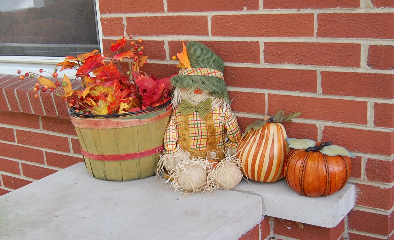 I decided to make amends and offer nuts up to the surviving squirrels. The girls and I picked up a big container of acorns at the park and put them in a dish on the front porch. I even went so far as to make it all cute and fally: