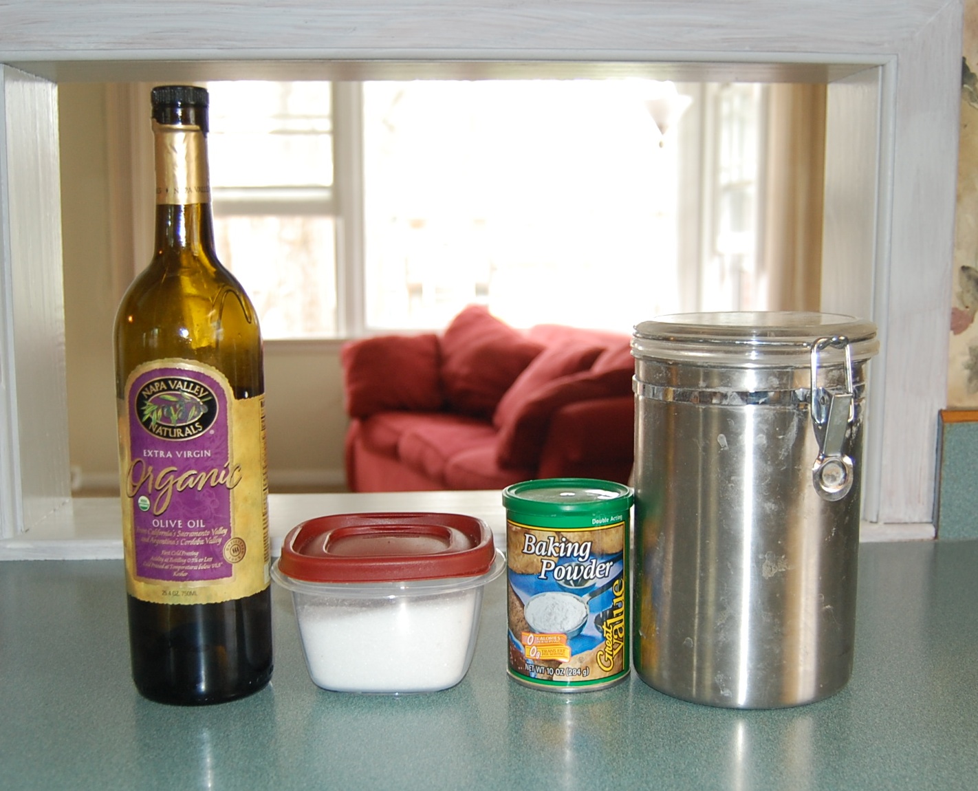 Olive oil, salt, baking powder and flour