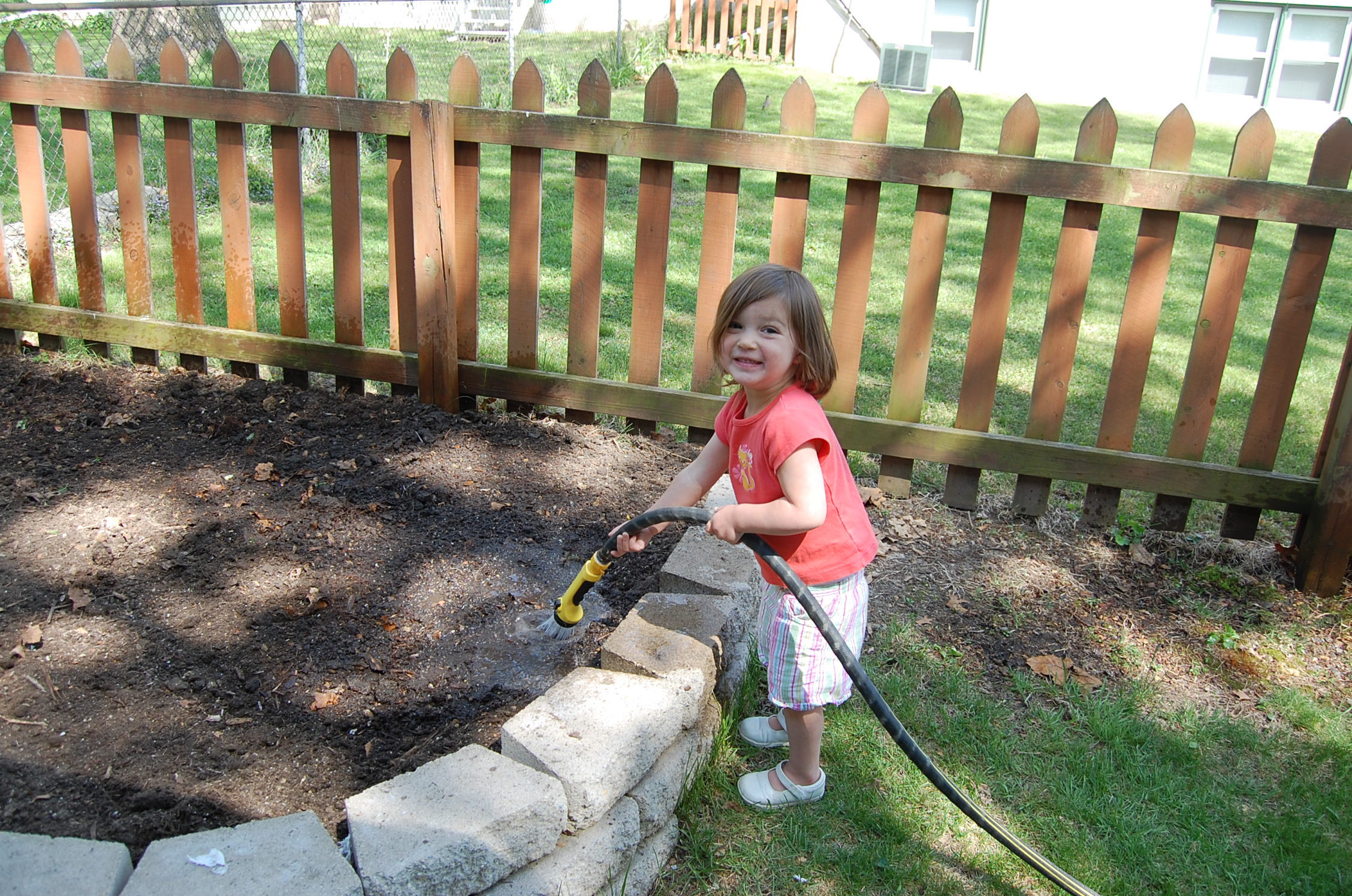 Julia kindly watered. The same spot. Over and over again. By the time she was done we had a nice mud pond.