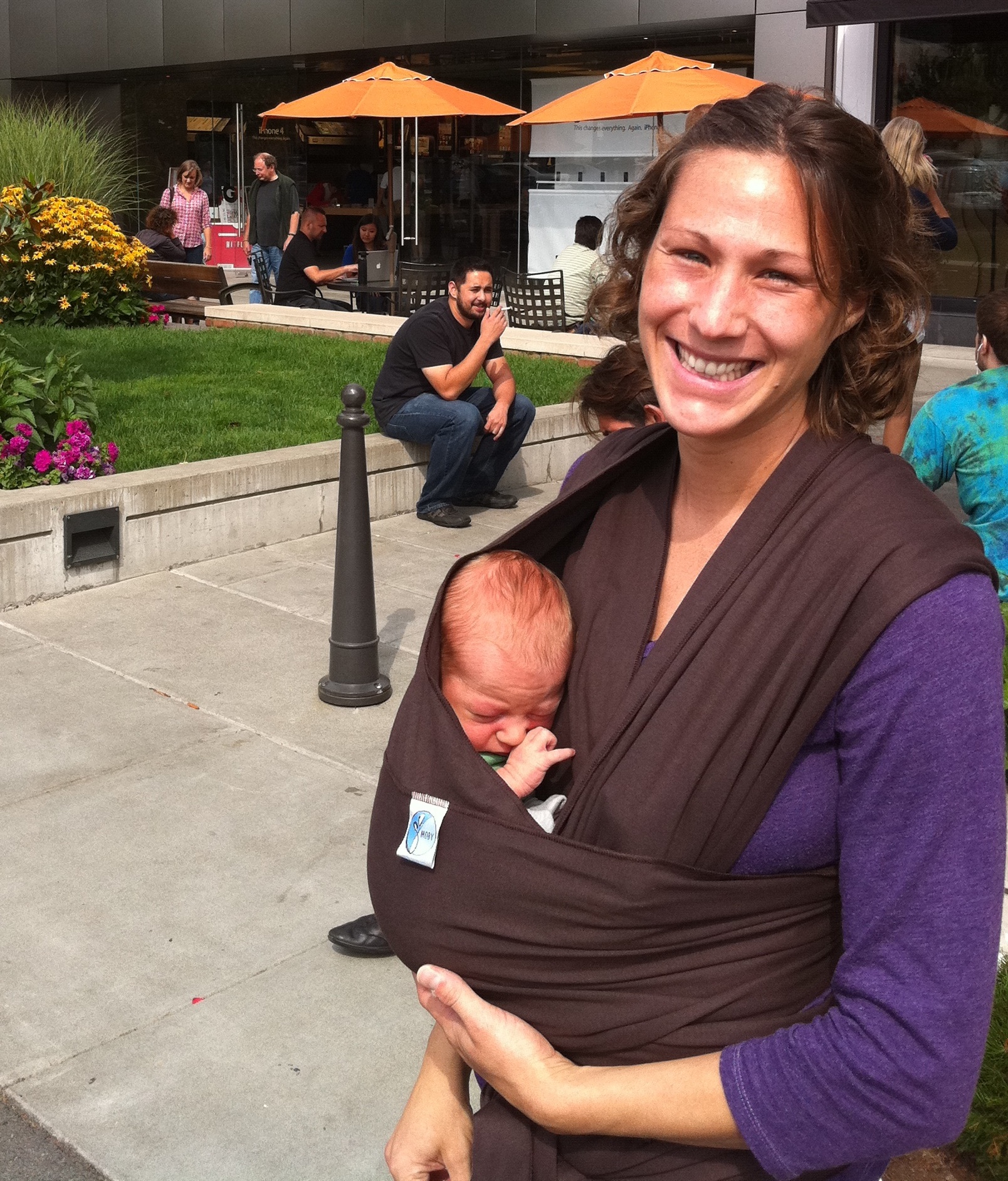 -It is challenging to put the Moby on in public as the fabric is so long and it drags the ground which might seem fine until your standing outside your car in a dirty parking lot with no way to put it on while your baby screams in his car seat. Or maybe that’s just me
