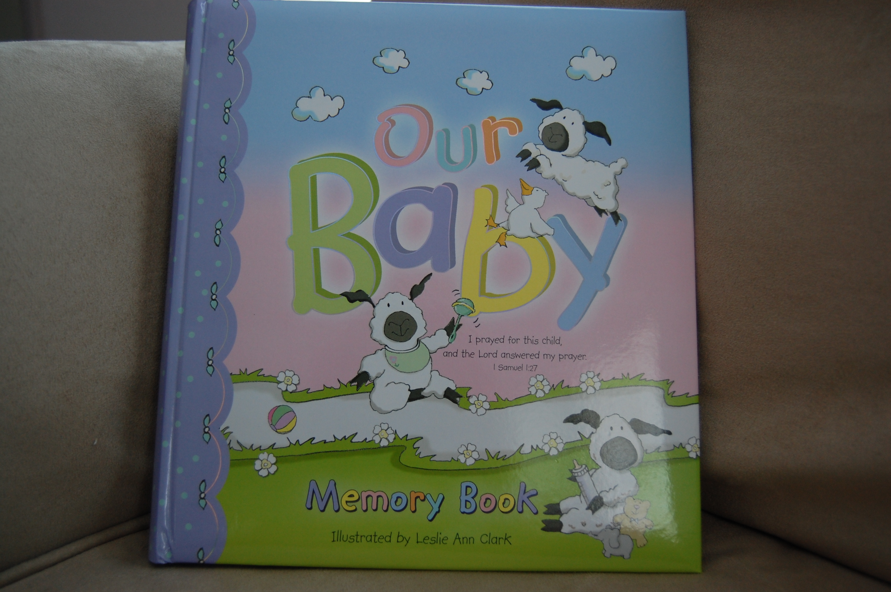 My first item on my list? A baby book. My mother-in-law give me a baby book when I was pregnant with our first child. I remember looking at her and saying “Ok, well, I will need one of these for all my babies then– not just the firstborn!” Sure enough, shortly after we announce that we are pregnant the last two times, she has provided yet another baby book. And while there are definitely blanks not filled in and pages here and there that are completely bare, I’m proud to say that I have kept up with them…. somewhat.