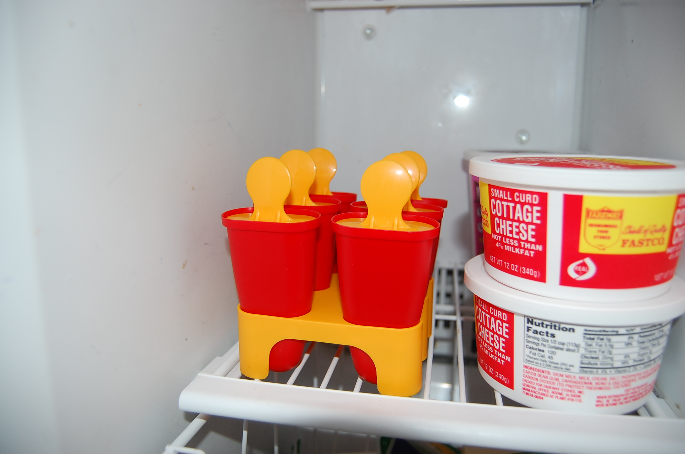 I poured the juice into each of the molds and stuck it in the freezer overnight: