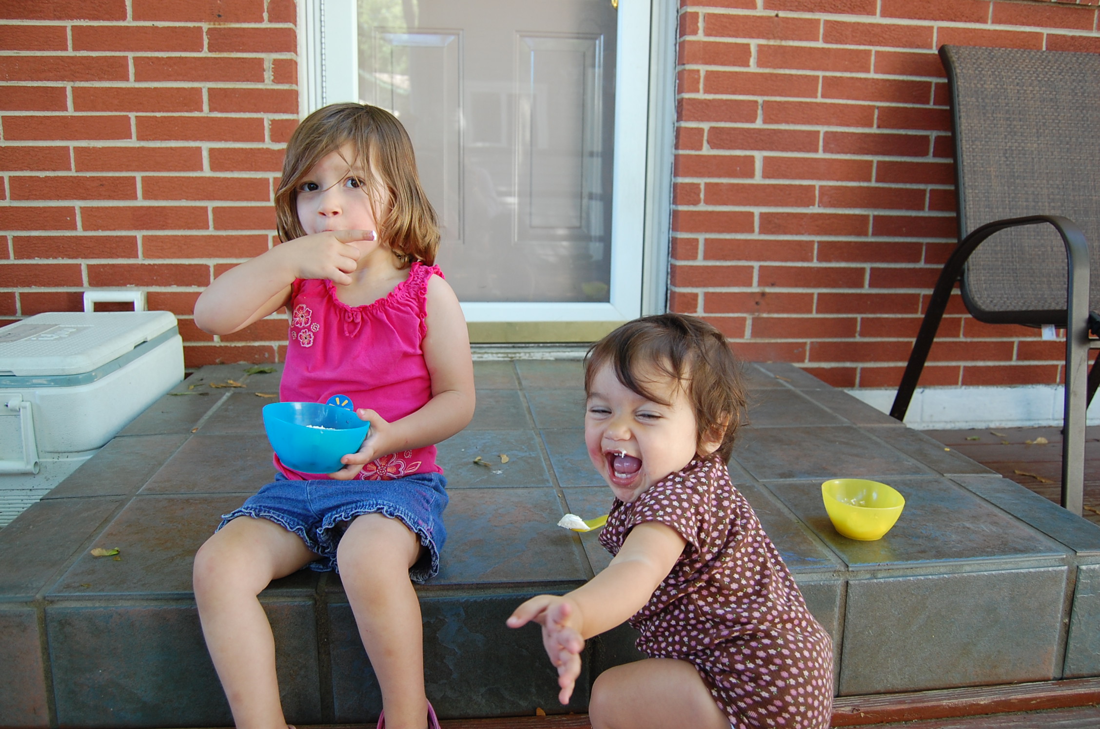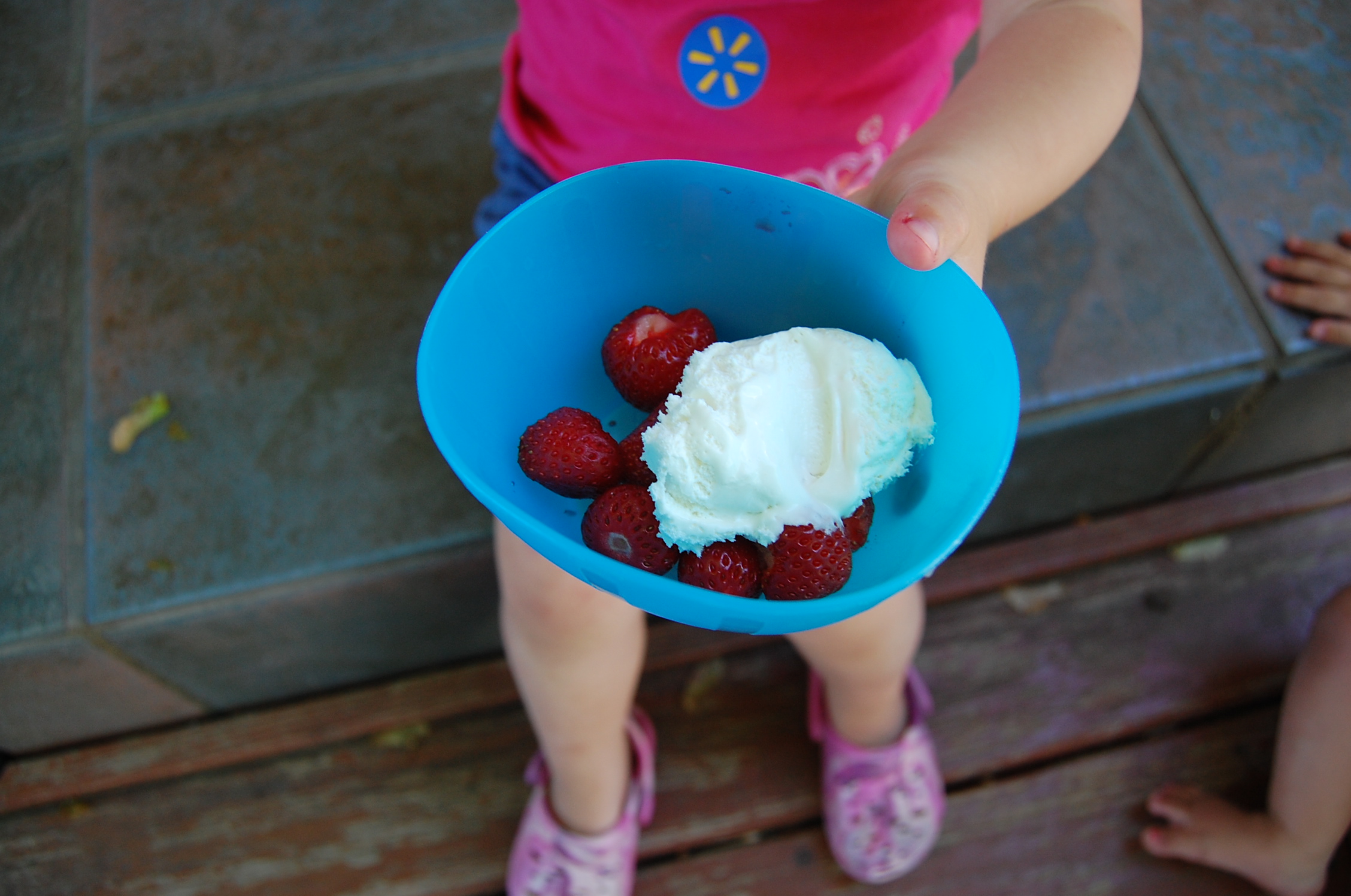Once we got home, the Windhamettes and I sat outside in the hot summer air eating fresh picked strawberries and whipped cream.
