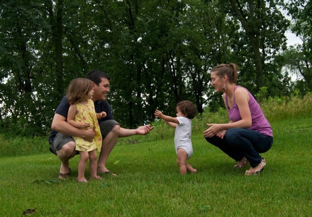 For the last week, we’ve had some friends staying with us as they move into a new home {which is actually behind our house – sort of}. They are some dear friends, and while it’s stressful at times to have four kids and two moms in a tiny kitchen, it’s been a lot of fun. Our girls could get use to having playmates instantly at hand. Julia especially. From the moment she wakes up she’s asking “Go play with my friends? My friends not sleep. Go play with them.” Good thing they like her, otherwise I think she’d wear them out! Hannah has been really taking off with her walking – literally. I have to watch her with hawk eyes or she’ll be halfway down the block before I know what’s happen. Keeps me on my toes!