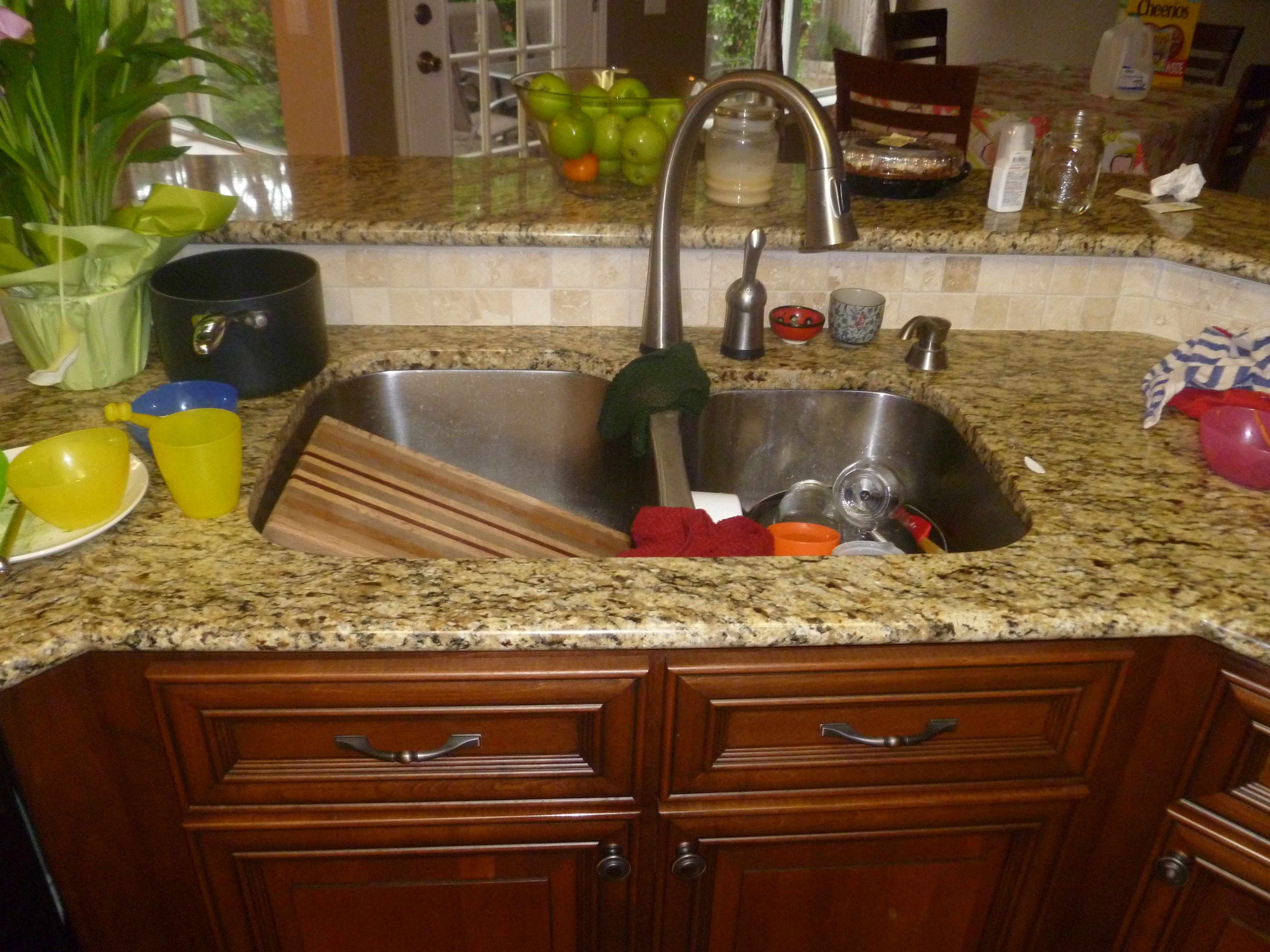 Saturday morning, I flooded the girls’ bathroom. The toilet got clogged while I was cleaning and water started flowing everywhere.